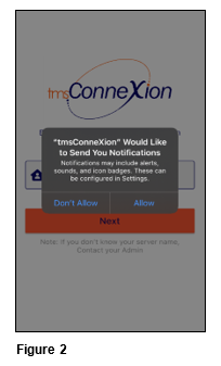 5. Once installed and opened for the first time, enter the Server Name as provided by TMS and tap Next (Figure 3).