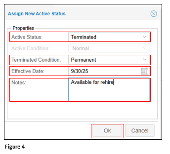 a. From Active Status, select Terminated.
