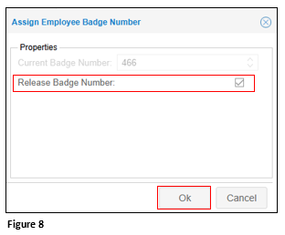 3. On the Assign Employee Badge Number screen, check Release Badge Number. Click OK (Figure 8).