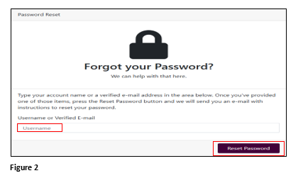 2. From the Forgot your Password? screen, enter your Username or Verified E-mail address and click Reset Password (Figure 2).