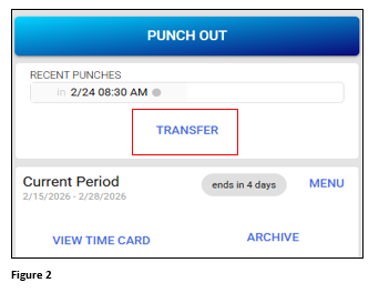 2. After punching in and from the home page, click Transfer (this can also be performed on any of the MAM tabs) (Figure 2).