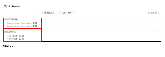 8. The user’s transfers and hour designations will display on their timecard (Figure 8).